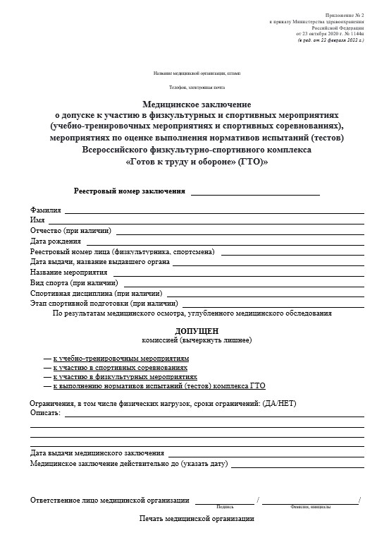 Заключение, подтверждающее отсутствие противопоказаний к тренировочному процессу, необходимо после получения спортсменом травмы, прохождения полной реабилитации. Обследование для изготовления формуляра является комплексным, включает осмотр терапевтом, кардиологом, неврологом, ортопедом, офтальмологом. Для допуска в большой спорт, к массовым мероприятиям в программу входят анализы, различные инструментальные исследования.