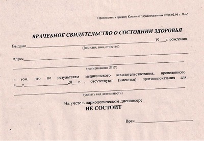 Сделать медсправку придется для оформления загранпаспорта, прохождения комиссии по усыновлению ребенка. Необходимо обратиться в наркологический диспансер района, пройти медицинский осмотр, сдать ряд анализов, тестов. После специалисты выдают справку, что человек не имеет признаков употребления наркотических веществ.