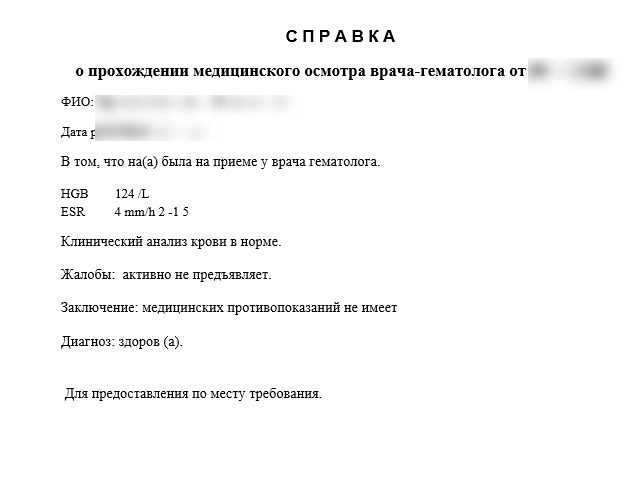 Нередко обращение к гематологу становится простой формальностью. Получить медсправку с заключением требуют в следующих случаях: