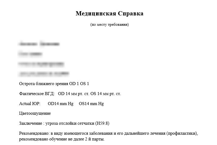 Образец справки от окулиста и офтальмолога